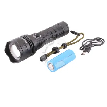 КОМПЛЕКТАЦИЯ: Фонарь, кабель, аккумулятор 26650 - 1 шт, эксплуатационный документ, коробка с магнитным клапаном.