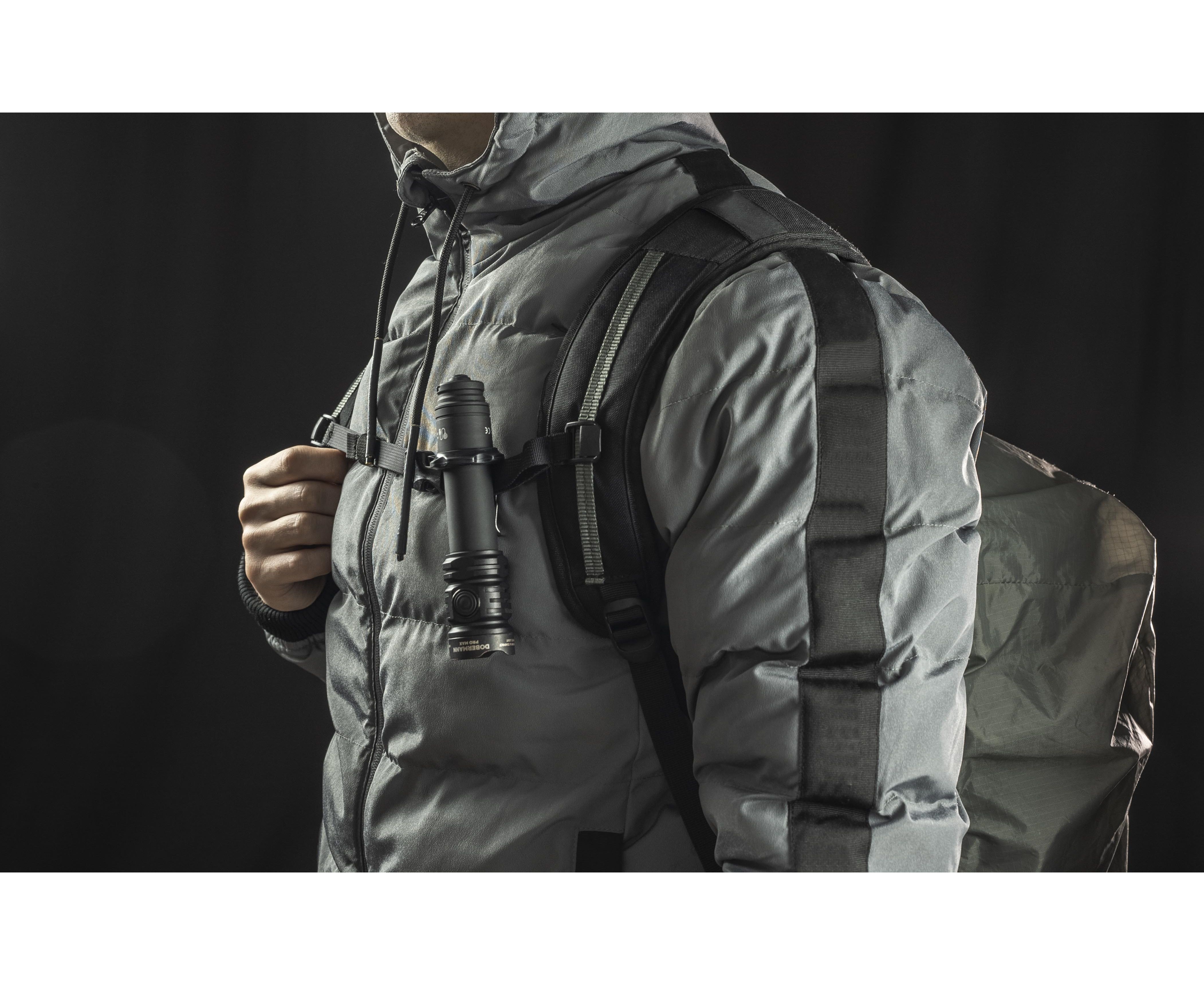 - Удобное управление: отдельная боковая кнопка с мягким нажатием для переключения режимов, тактическая кнопка для включения и выключения фонаря, а также для быстрого доступа к режиму Стробоскоп.