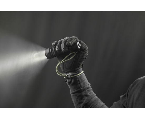 4) Ремешок - Ремешок на руку из сверхпрочного паракорда с возможностью регулировать размер и стальным карабином для быстрого снятия и установки на фонарь.