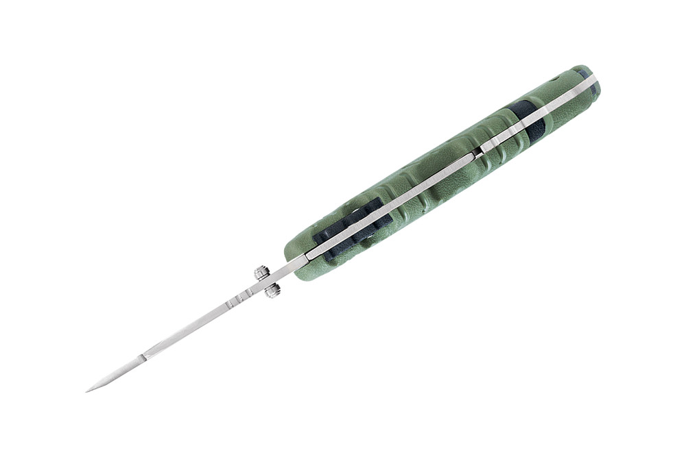 - рукоять, выполненная из комбинации GFN и Versaflex, обеспечивает прочный и удобный захват, а также устойчивость к внешним воздействиям; Зеленый цвет рукояти не только эстетичен, но и практичен для использования на природе, улучшая видимость ножа;