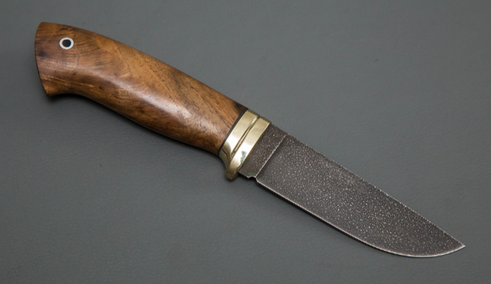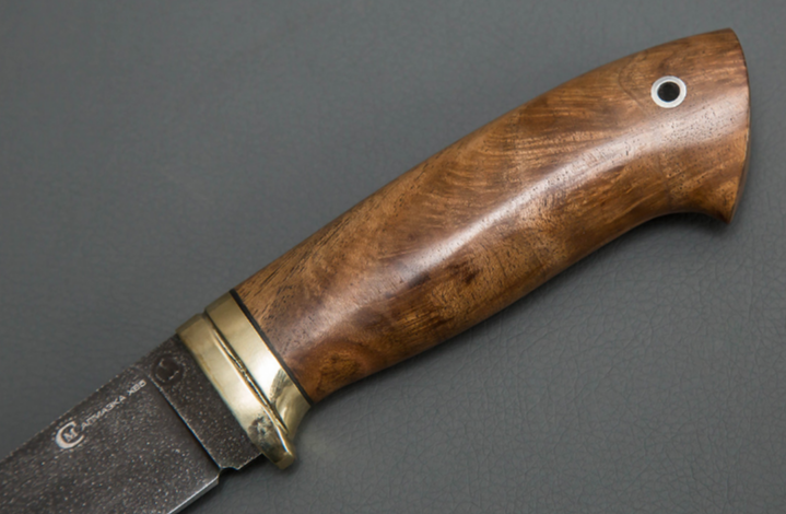 - наборная рукоять из стабилизированного капа ореха и мельхиоровым притином;