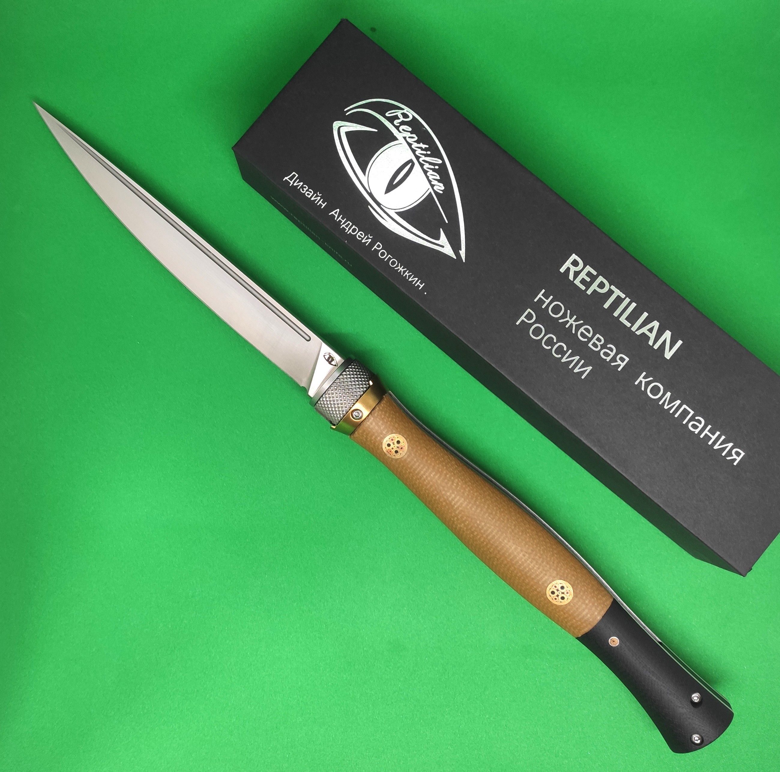 Нож складной REPTILIAN "Кабальеро-01" сталь D2, рукоять коричневая микарта/латунь, замок Viroblock