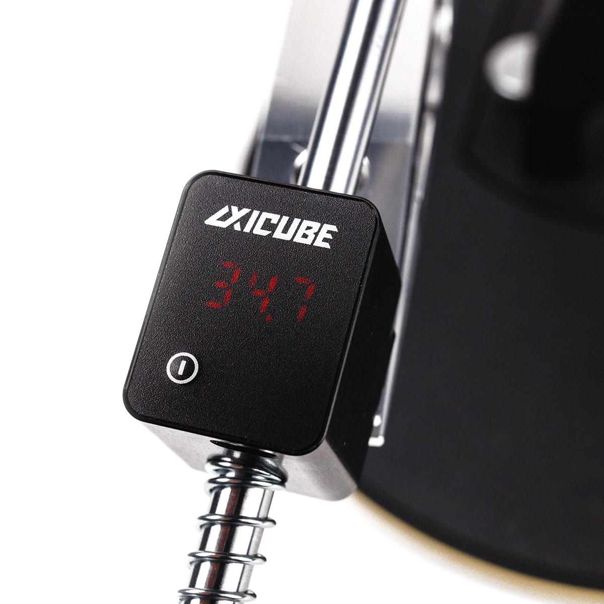 В комплекте с держателем абразива имеется устройство для измерения угла заточки Axicube*. Разработанный специально для систем заточки угломер встроен в корпус подвижного упора держателя и позволяет отслеживать параметры угла заточки в реальном времени. Axicube имеет жесткую связь с держателем абразива и находится в плоскости абразивного камня. Это позволяет получить максимальную точность угла в процессе работы. Позволяет выставлять угол с точностью до 0,1°. Axicube имеет алюминиевый корпус с черным анодированием, обладает влаго- и пылестойкостью, устойчив к вибрациям, падениям и перепадам температур. Ввиду особенностей процесса анодирования, оттенок покрытия может отличаться на разных деталях. Может эксплуатироваться при температурах от 0 до +40°С. Заряжается от стандартной зарядки USB Type-C. Каждый Axicube проходит калибровку на производстве с помощью поверенных средств измерения. Перед применением с помощью специальной калибровочной призмы ему задается начальный угол отсчета. При перестановке заточного устройства на другую поверхность, необходима новая калибровка с помощью призмы.