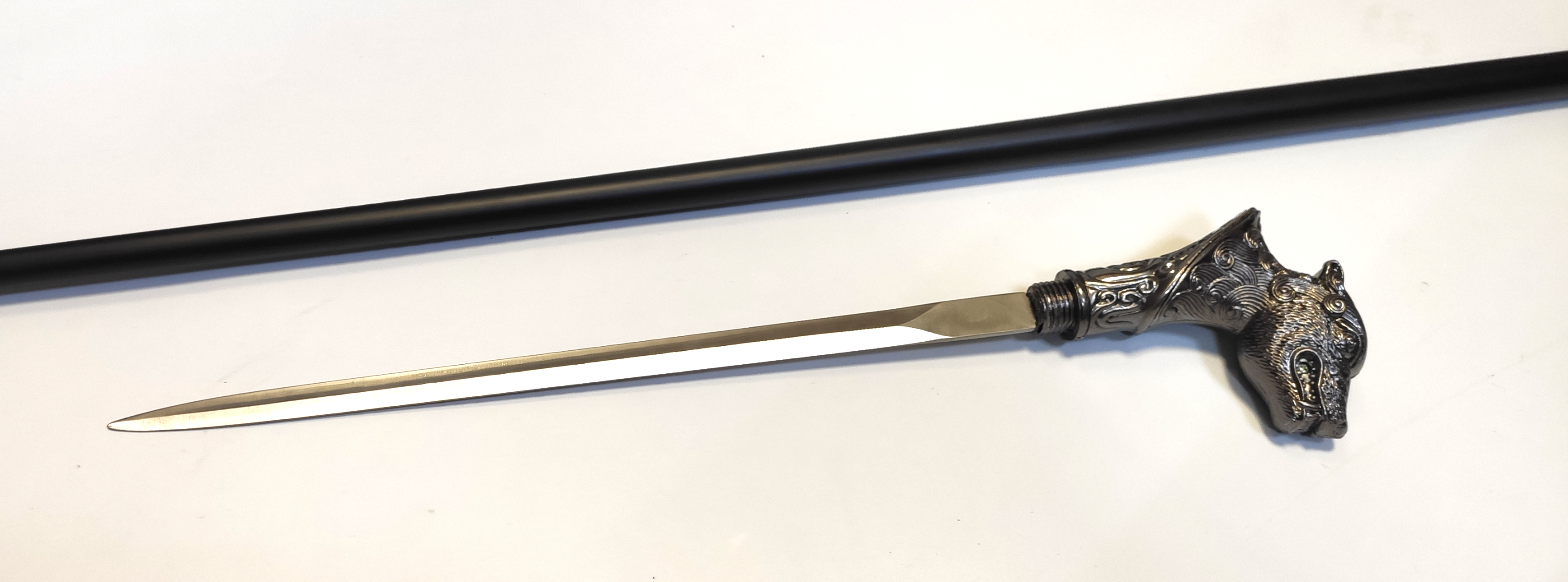 Клинок можно выкрутить и носить просто, как трость. Клинок без заточки, поэтому не является холодным оружием. Изделие надёжное и может использоваться не только в целях самообороны, но и по прямому назначению, как опора при ходьбе. Так же трость станет интересной изюминкой в любой коллекции ножемана.