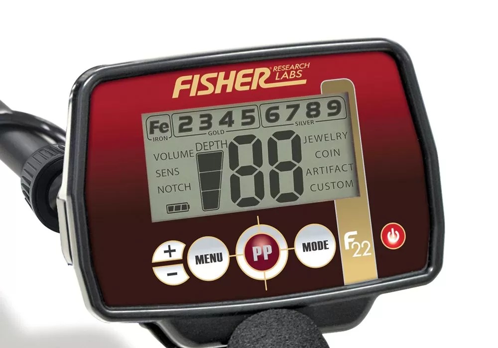 Металлоискатель Fisher F22 (частота 7,69 кГц, катушка 9” моно, 2хАА, 3 тона звука, 4 режима поиска)