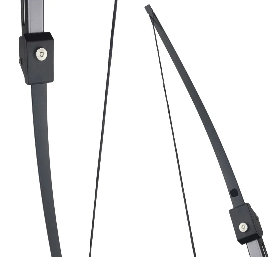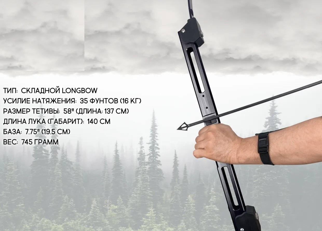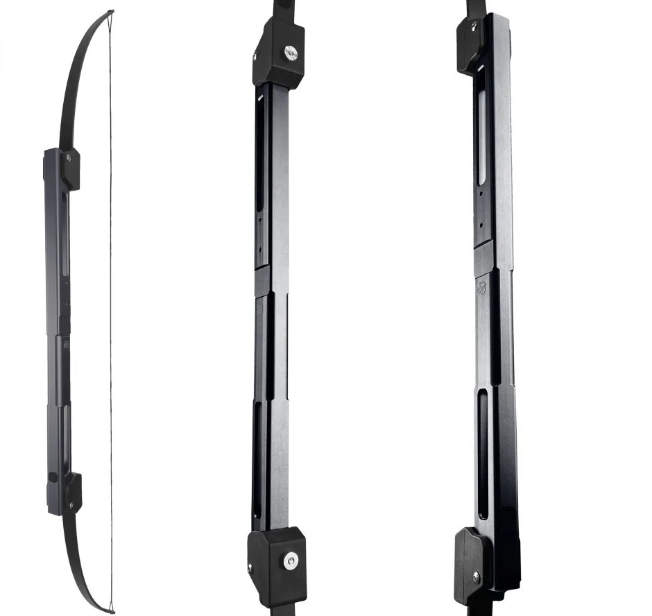 Плечи крепятся к рукоятке с помощью подвижных карманов, что позволяет сложить плечи вдоль рукоятки. Тетива предварительно снимается. Помимо тетивы, лук комплектуется удобным чехлом для переноски, классическим напальчником, классической полочкой (это универсальный тип полочки – их ассортимент всегда есть в продаже), а также тремя гнёздами для установки положения стрелы на тетиве.