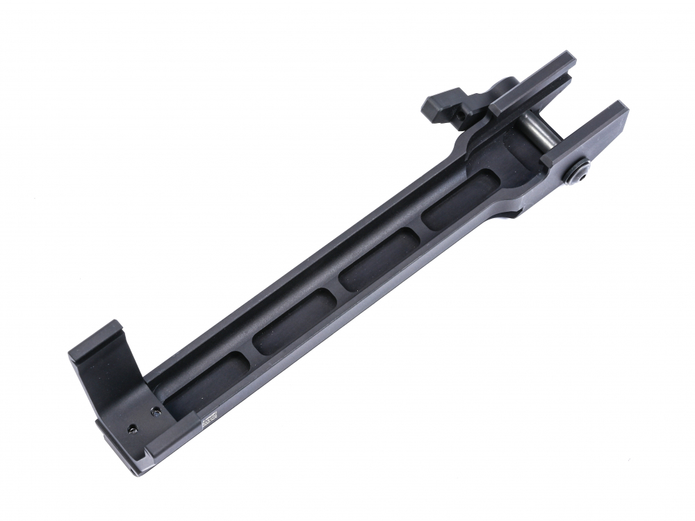 Верхний кронштейн для карабинов Вепрь-Супер (СОК-95М, СОК-97М) Вепрь-Пионер (СОК-97Р) с планкой Picatinny \ Weaver с длиной 165мм. Кронштейны устанавливаются на крепление колодки целика с дополнительным упором на ствольной коробке. Имеет рычаг для быстрого снятия и установки. Открытые прицельные приспособления не видны.