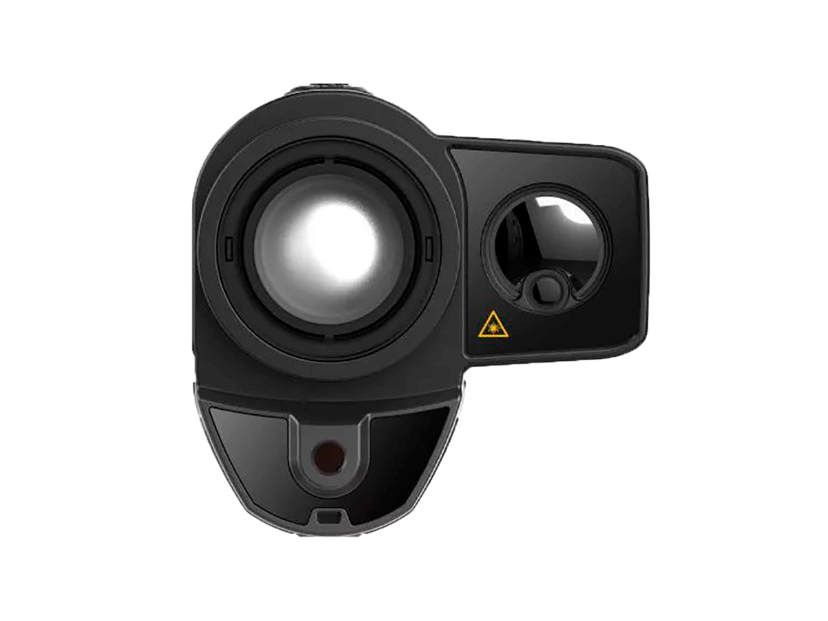 Отличное дополнение тепловизионного монокуляра — лазерный дальномер. Дальномерный блок расположен с левой стороны корпуса и не мешает управлению прибором правой рукой. Устройство работает в режиме сканирования и однократных замеров, а дальность измерений при нормальной видимости составляет порядка 600 м.