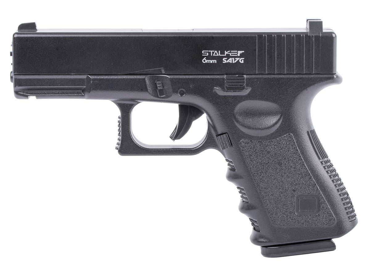 Пневматический пистолет Stalker SA17G, входящий в пружинно-поршневую серию SPRING, создан на основе известного австрийского пистолета Glock 17 третьего поколения. Это полноразмерный пистолет, своей массой и внешним видом похожий на боевой прототип. Имеет дульную энергию менее 0,7 Джоулей, поэтому не является оружием, что позволяет приобретать его без каких-либо лицензий и разрешений.