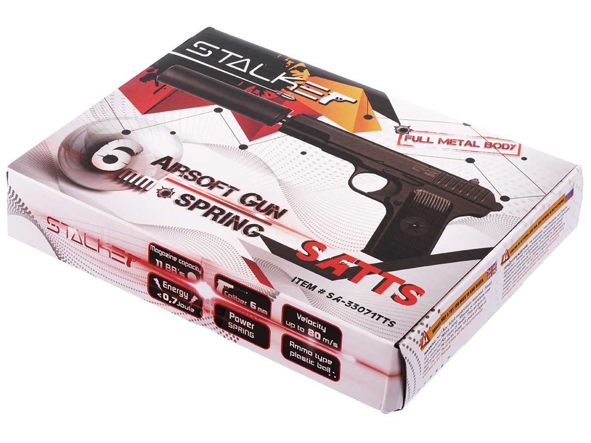 Пистолет страйкбольный Stalker SATTS Spring (TT) + имитатор ПБС кал.6 мм, металл, 80 м/с (SA-33071TTS)