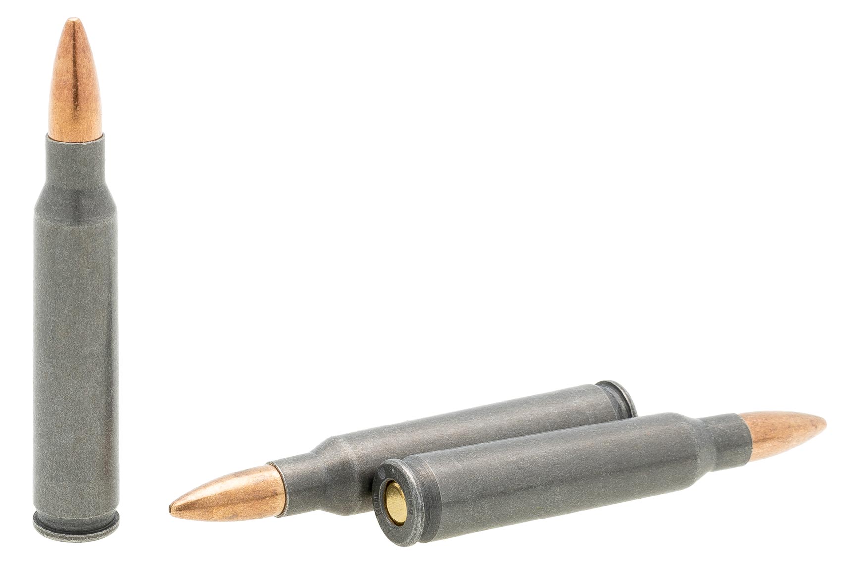 Особенности — Гильза стальная, пуля двухэлементная, биметаллическая оболочка, свинцовый сердечник, капсюль - тип "Бердан";