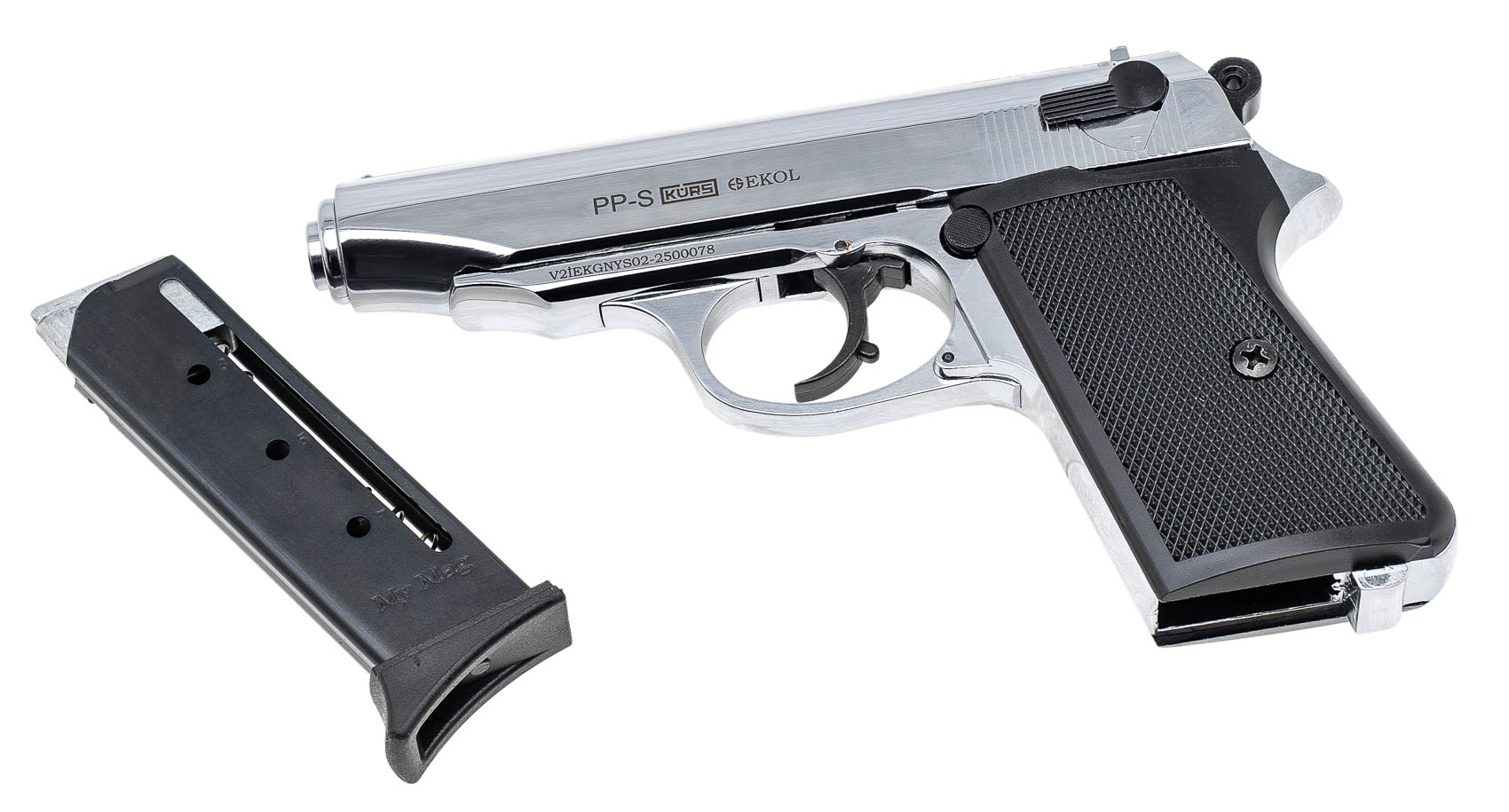 Пистолет сигнальный PP-S KURS (Walther PP) кал.5,5 мм под патрон 10ТК, цвет хром