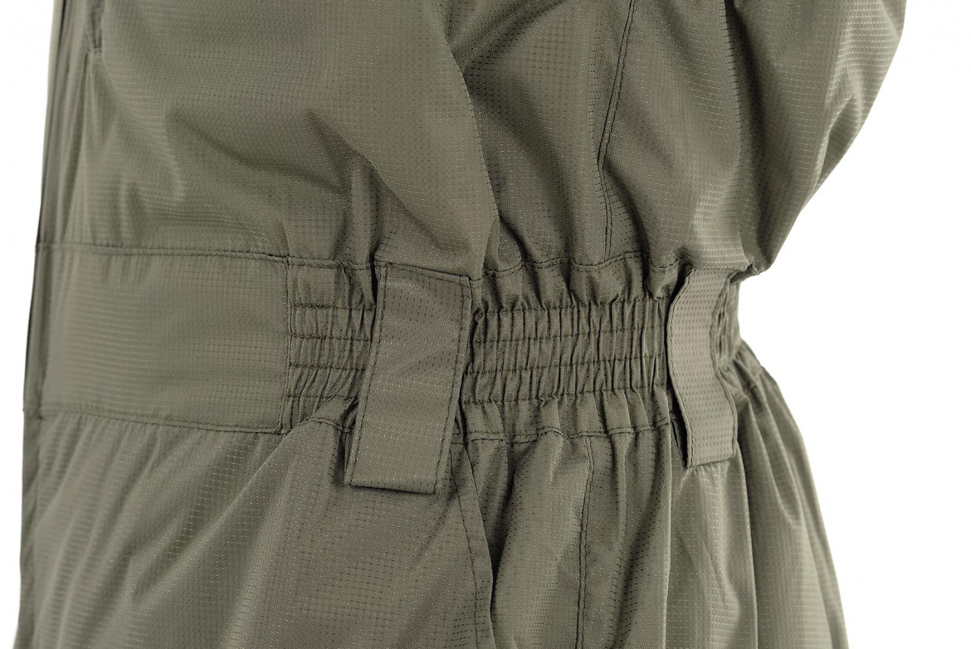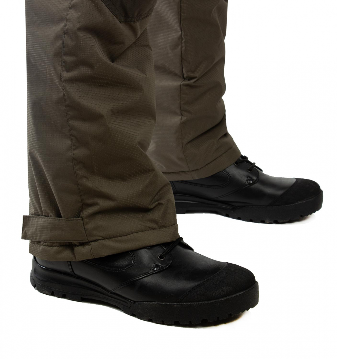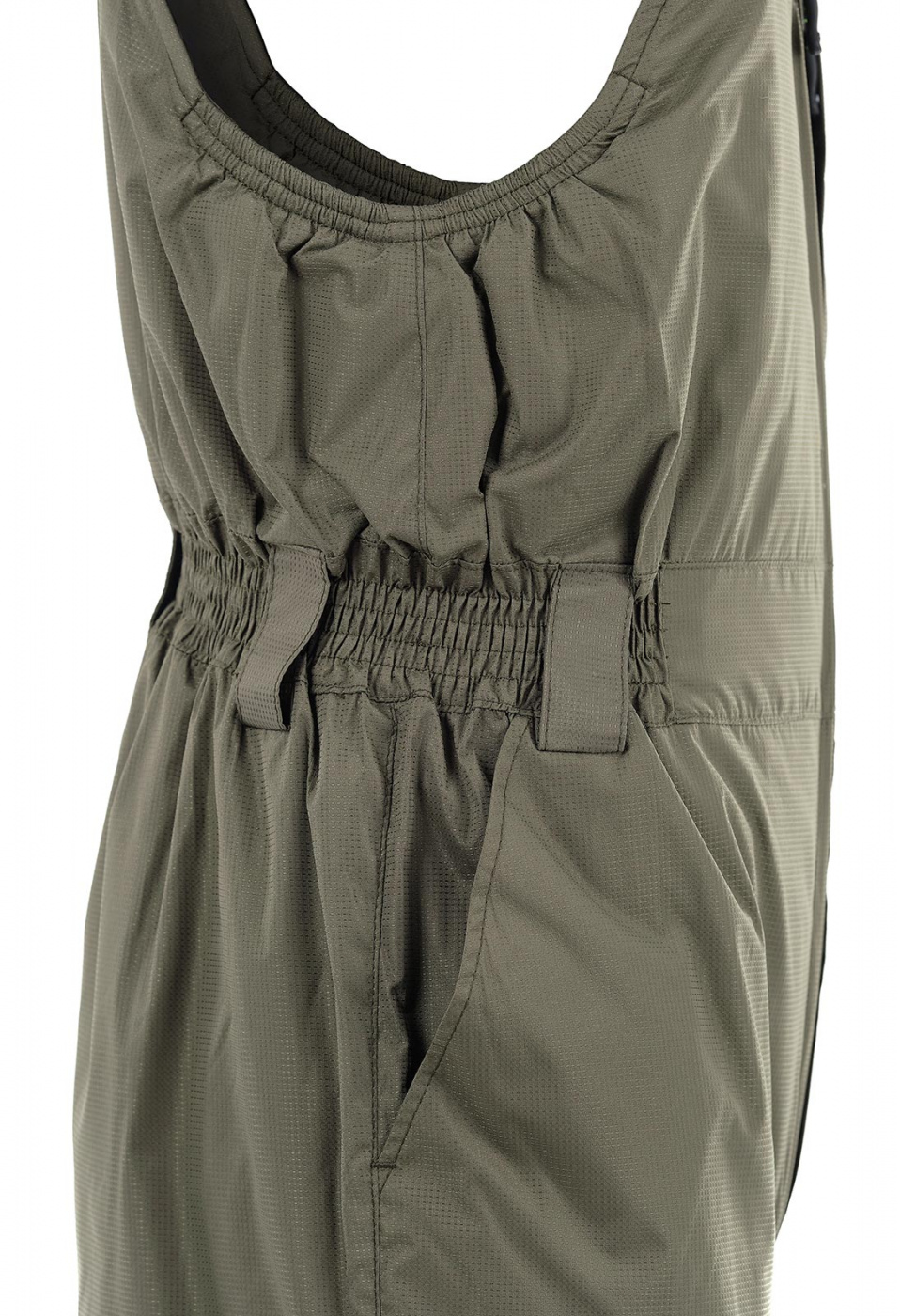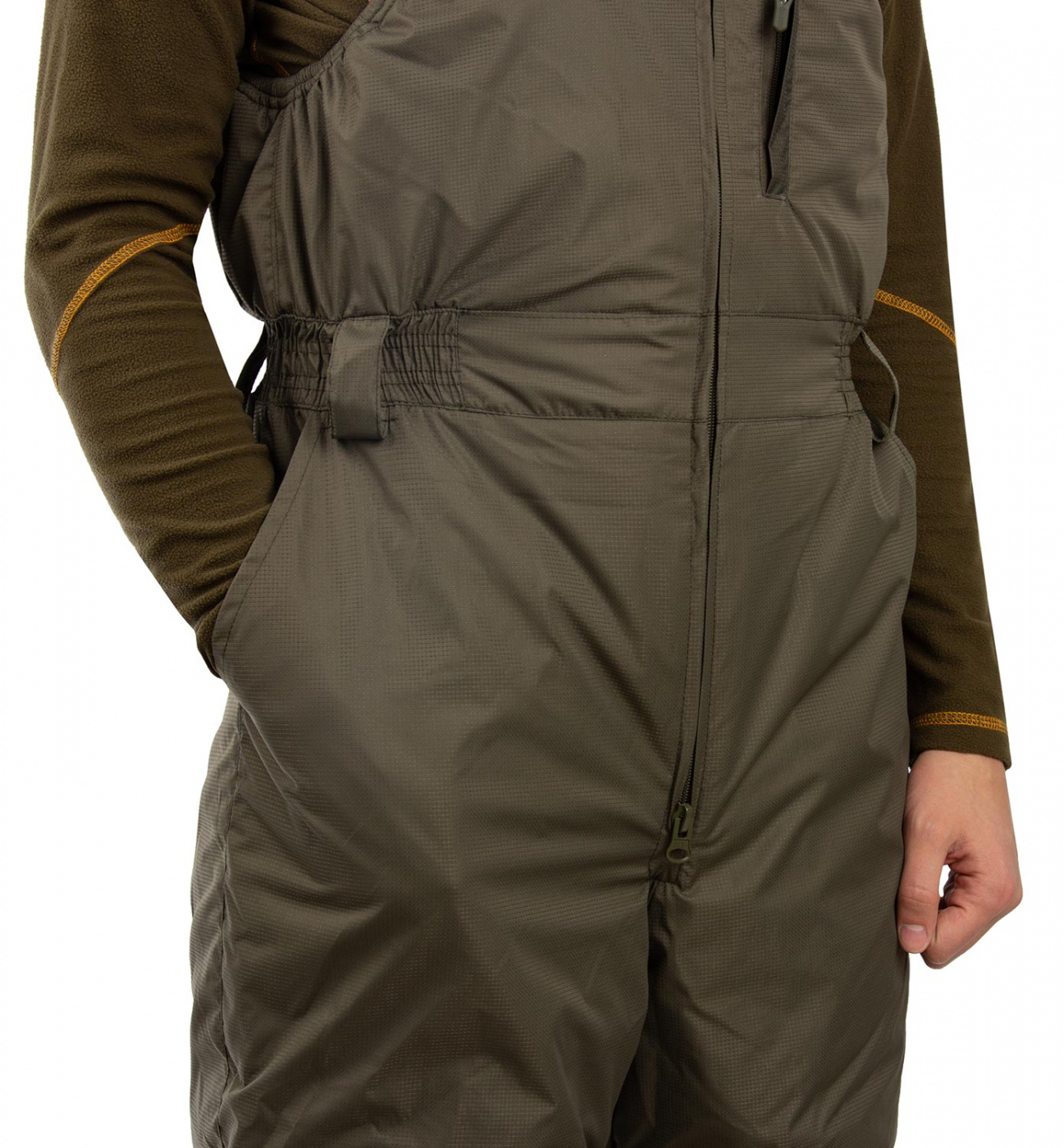 Удлиненная куртка прямого силуэта с воротником-стойкой, центральной застежкой на двухзамковую молнию. Утеплитель "Русский север" сохраняет комфортную температуру. Полукомбинезон с анатомическим кроем наколенников, ширина низа брюк регулируется при помощи хлястика, предусмотрена фиксация полукомбинезона по линии талии.