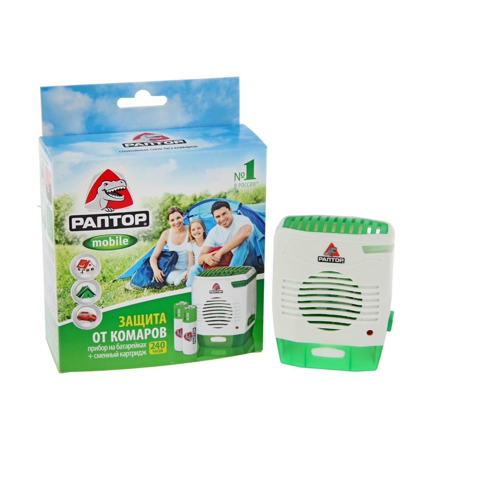 Портативный прибор Раптор Mobile (Мобил) - это инсектицидное средство для защиты от комаров, в комплекте: прибор с фен-системой, сменный картридж, 2 батарейки типа АА